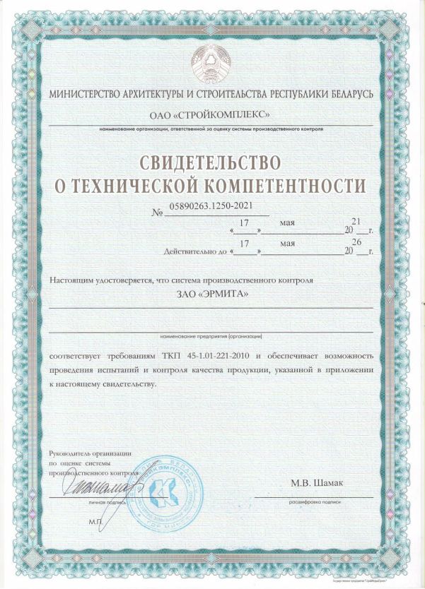 • Собственное производство изделий «ТЕРМОДАХ» по СТБ 2099-2010, сертификат соответствия ГОСТ ИСО 9001-2015 (ISO 9001:2015);