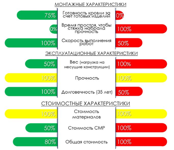• Отсутствие цементной стяжки оптимально для реконструкции и утепления существующей кровли;