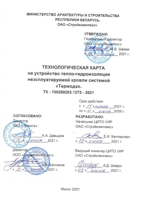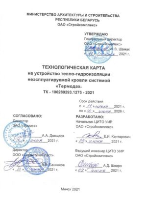• Технологическая карта на устройство тепло-гидроизоляции кровли системой «Термодах» (ТК-100289293.1275-2021);